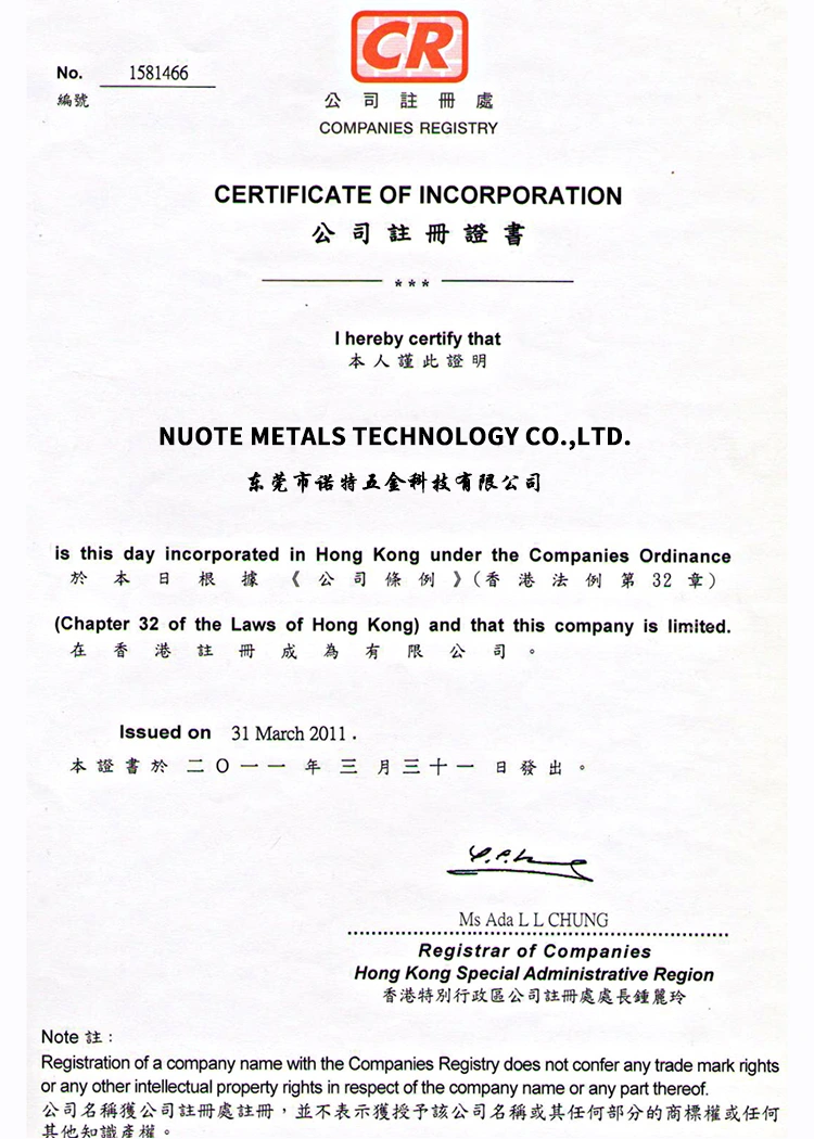Wij zijn Nuote Metals uit Dongguan, China.