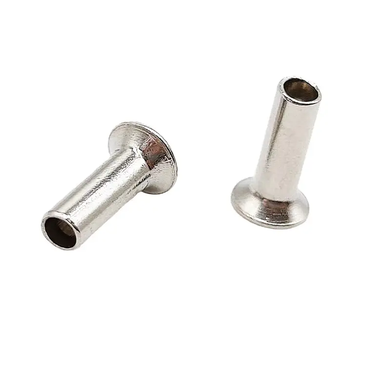 Semi-buisvormige klinknagels met verzonken kop zijn ontworpen om gelijk te liggen met het materiaaloppervlak, cruciaal voor toepassingen die een gladde afwerking vereisen, zoals in de vliegtuigbouw, om de aerodynamische weerstand te verminderen. Materialen kunnen messing, staal, koper, roestvrij staal en aluminium zijn, met verschillende soorten oppervlaktebehandeling.