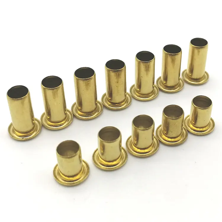 Oogjesklinknagels kunnen worden verguld met wit nikkel, gepolijst tin, imitatie goud, antiek brons, mat nikkel, brons, zink en zilver. We bieden een breed scala aan stijlen en een uitgebreid scala aan precisie en milieuvriendelijke oogjesklivetten. We kunnen ze aanpassen volgens uw voorbeeld of tekening. Standaardtoleranties voor oogjesklinknagels zijn: ± 0,05 mm voor buisdiameter, ± 0,1 mm voor hoogte en ± 0,15 mm voor dopdiameter. We kunnen ook produceren volgens individuele klantspecificaties.
