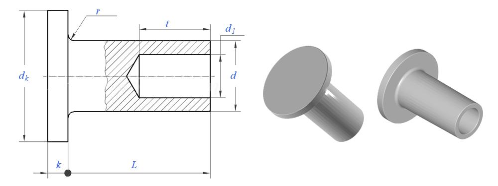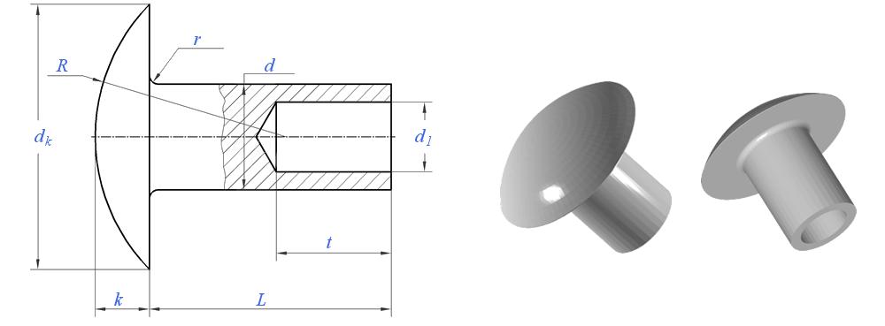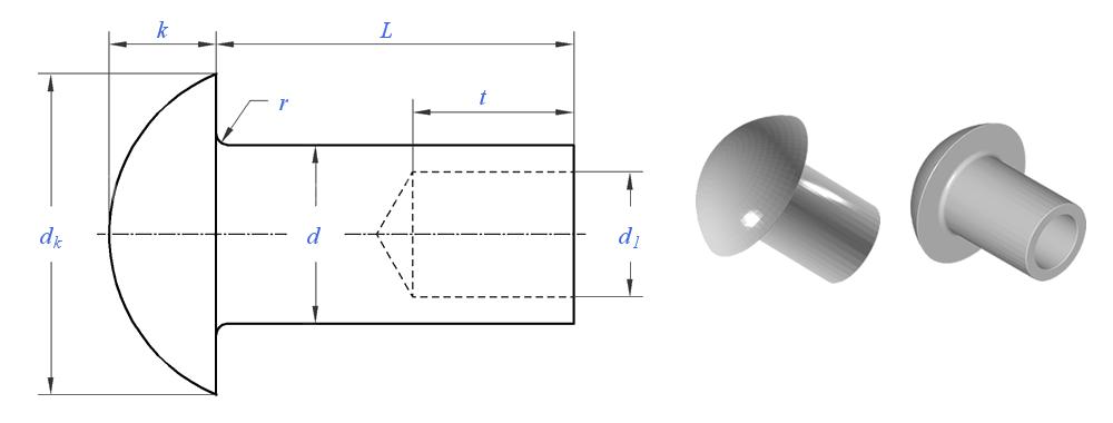 A ronde kop semi-tubulaire klinknagel is een soort klinknagel met een afgeronde, koepelvormige kop en een gedeeltelijk holle schacht.