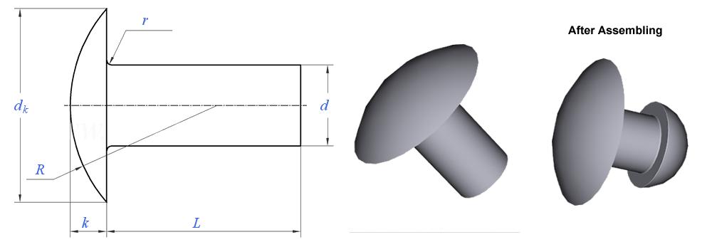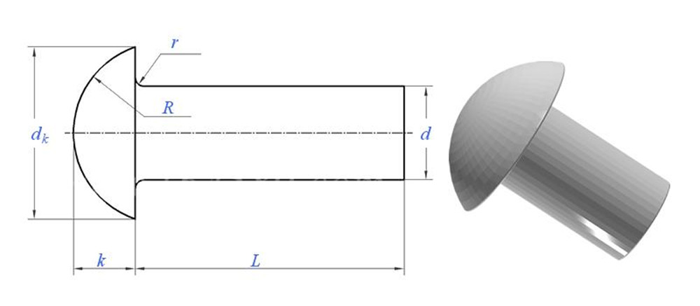 A Round Head Solid Rivet is een soort klinknagel met een afgeronde of koepelvormige kop en een stevige schacht.