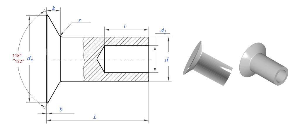 A verzonken hoofd vaste klinknagel is een klinknagel met taps toelopende kop en een stevige schacht.