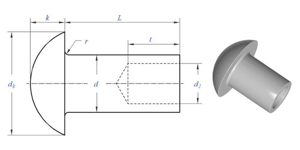A Mushroom hoofd semi-tubular klinknagel Ken hebben een brede, afgeronde kop die een groot lageroppervlak biedt, de lading verdeeld en de vervorming van het materiaal vermindert.