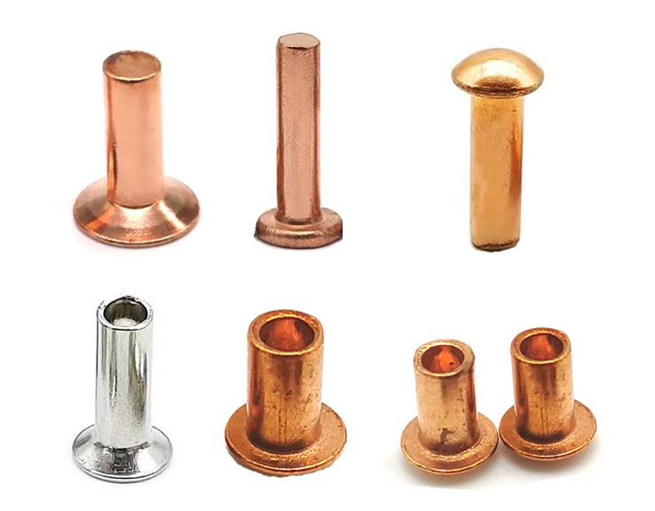 koperen klinknagels inclusief:Koper vaste klinknagels, koperen semi-tubulaire klinknagels, Flat Head kopper klinknagels, Ronde kop koperen klinknagels, verzonken kop koperen klinknagels, champignon kop koperen klinknagels, Pan Head Copper Rivets, truss hoofd koperen klinknagels, universele kop koperen klinknagels enz.