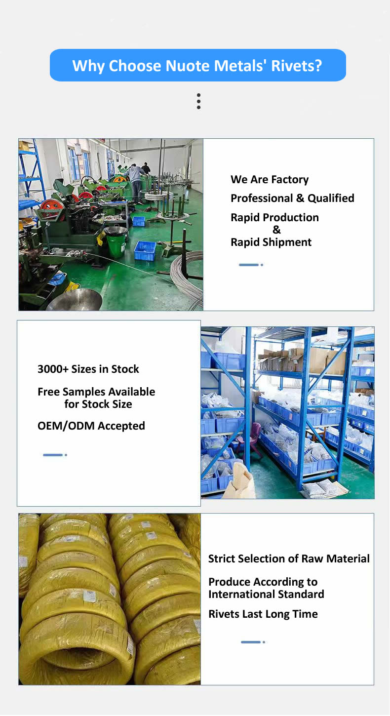 Nuote metalenproduceert alle drie de typen, waardoor klanten de klinknagelconfiguratie precies kunnen afstemmen op hun mechanische en productievereisten.